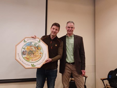 Bei der Hegeringversammlung des Hegering Pfullendorf am 06.03.2025 stellte sich Roman Bauer, nach langjähriger Tätigkeit nicht mehr zur Wahl. Der neue Hegeringleiter Matthias Steinmann dankte Roman Bauer für seinen langjährigen Einsatz im Hegering Pfullendorf. Roman Bauer war 8 Jahre stellv. Hegeringleiter und 12 Jahre Hegeringleiter. Als Überraschung übereicht Matthias Steinmann Roman Bauer eine Ehrenscheibe mit einem persönlichen Porträt. Dieser freute sich sehr über dieses persönliche Geschenk. Die Ehrenscheibe wurde von Philipp Steinmann von Hand gemalt.