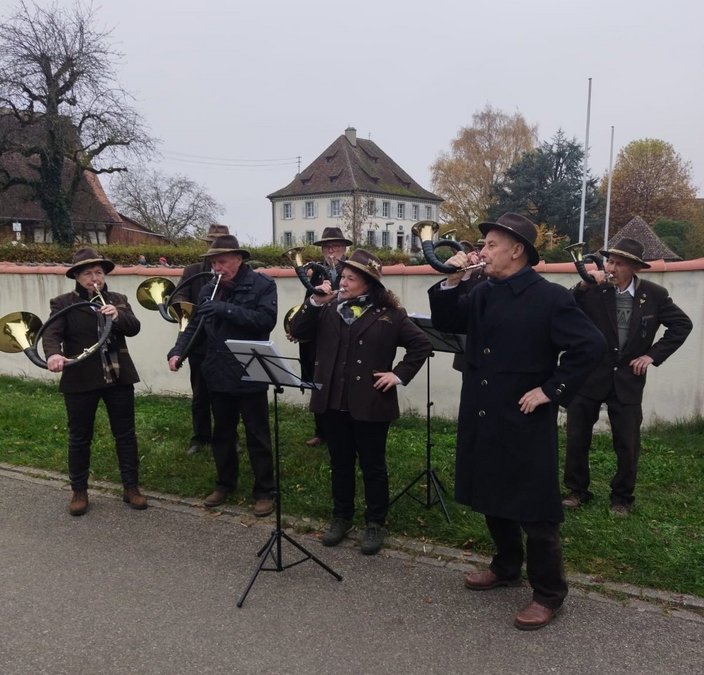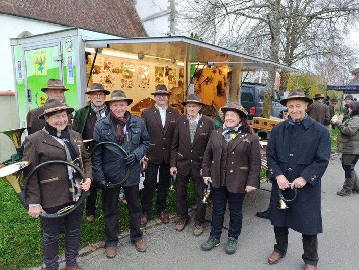 Auch die Markdorfer Jagdhornbläser repräsentierten die Badischen Jäger Überlingen und spielten sowohl am Lernort-Natur-Wildwagen, als auch am gut besuchten Kaffee- und Kuchenstand.