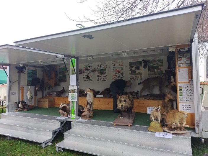 Die Badischen Jäger Überlingen präsentierten sich hier mit dem Lernort-Natur-Wildwagen des LJV.