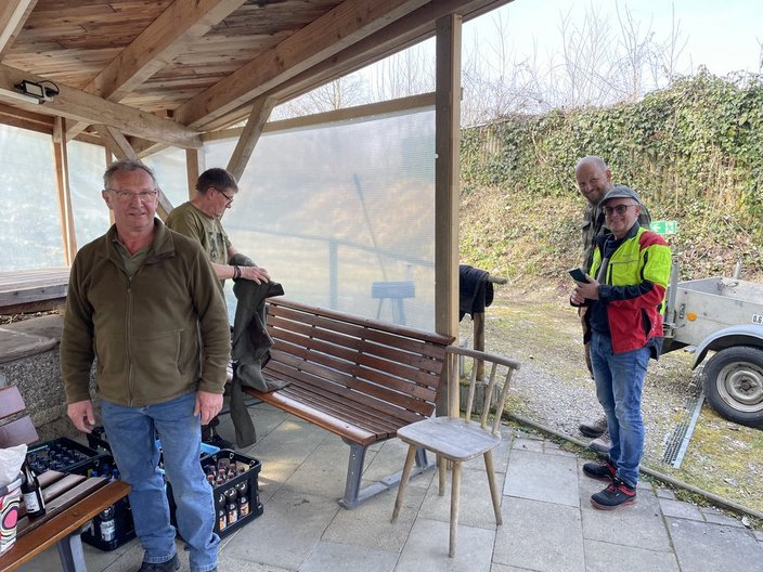Daher entschieden wir von der Schießstandleitung sehr kurzfristig, und dann auch noch an einem Sonntag, eine Arbeitseinsatz einzuberufen. Trotz der Vorlaufzeit von nur 2 Tagen und der an diesem Sonntag auch stattfindenden Landtagswahlen in BW fanden sich 13 Helfer aus allen Hegeringen ein.